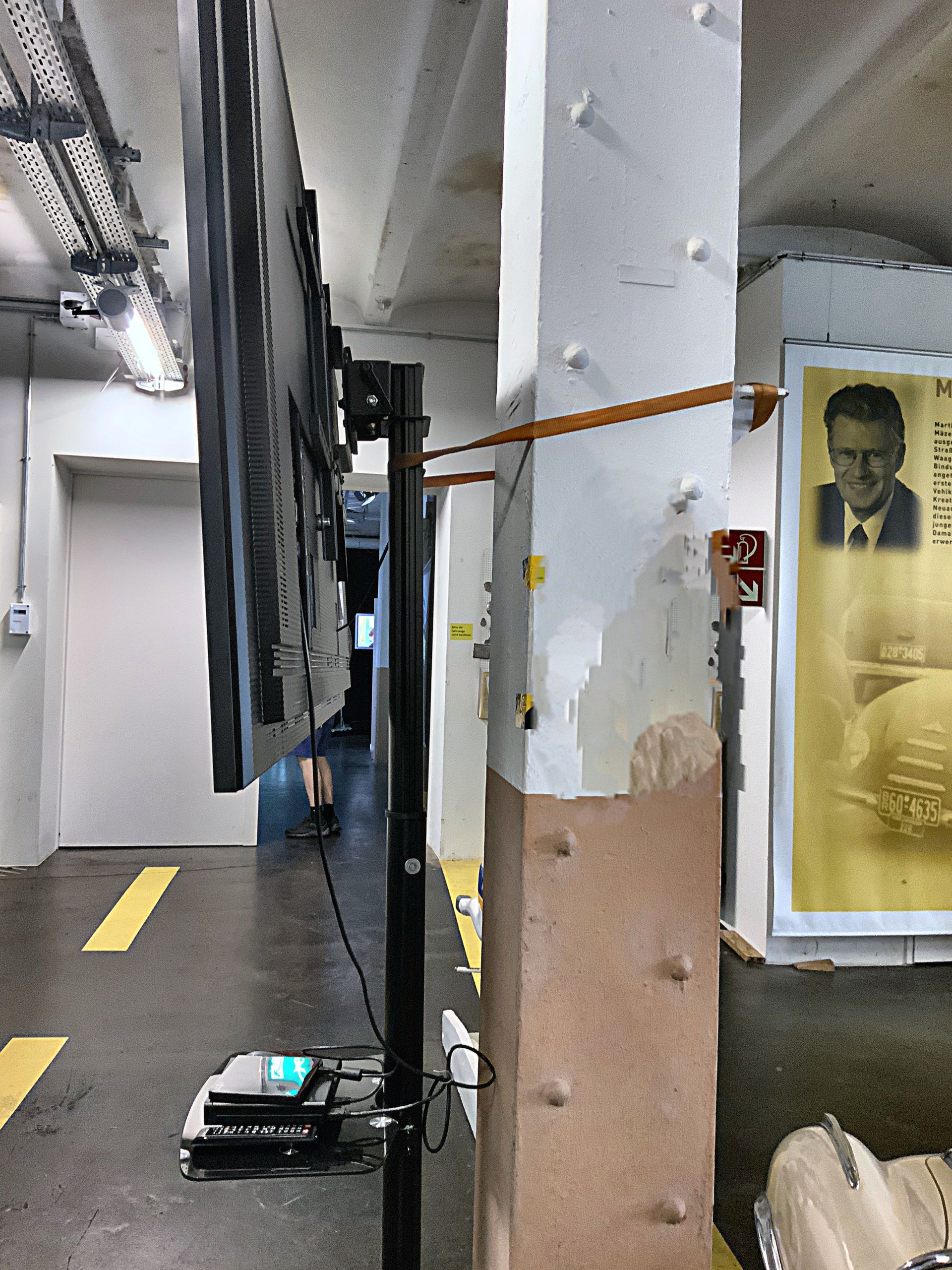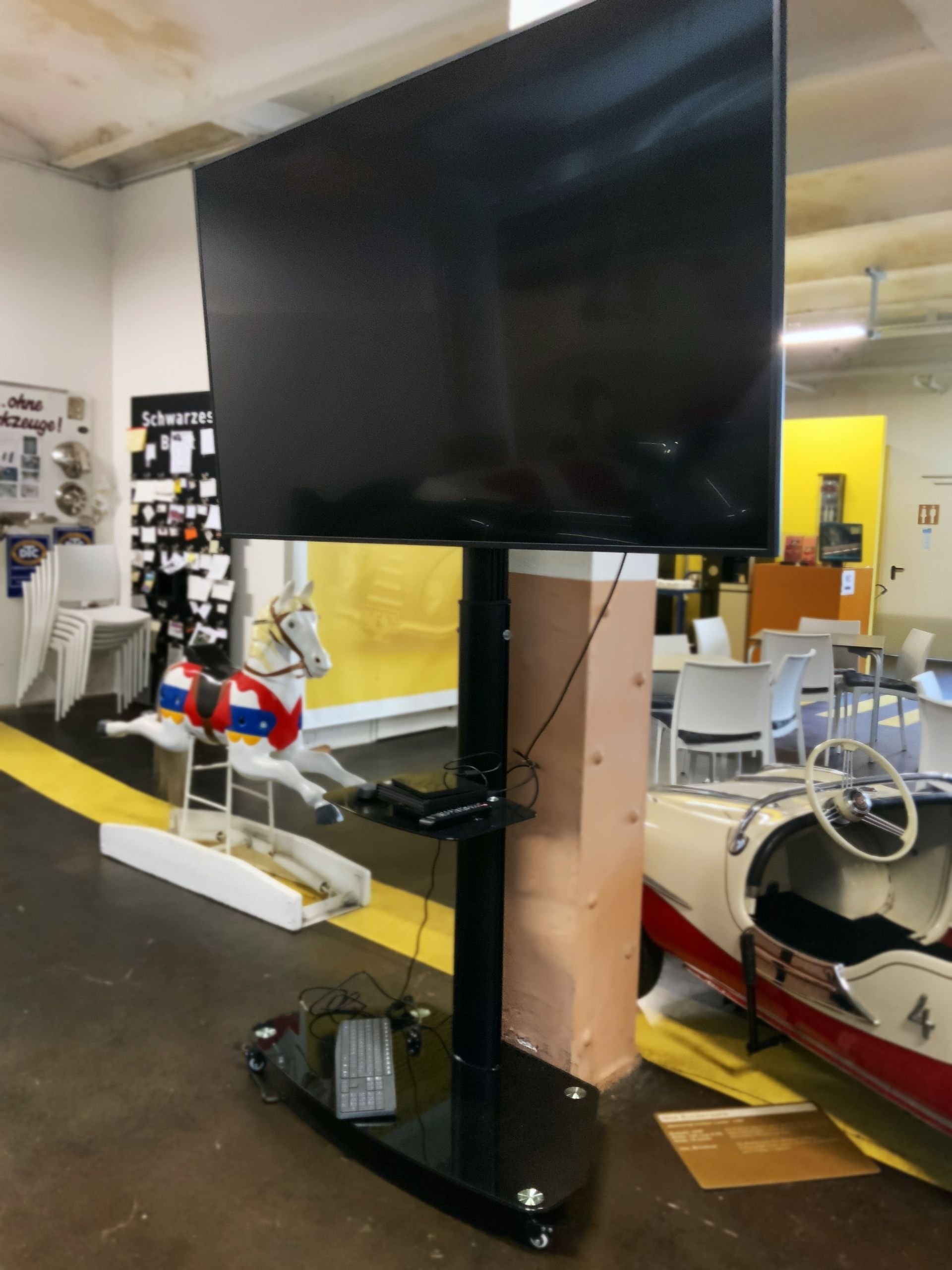 Das bisherige Display war defekt und man wünschte sich hier ein neues Display. Interaktiv sollte es sein, dass die Besucher das Video (neu) starten und beenden können. Ein Lautsprecher sollte für den guten Ton sorgen.